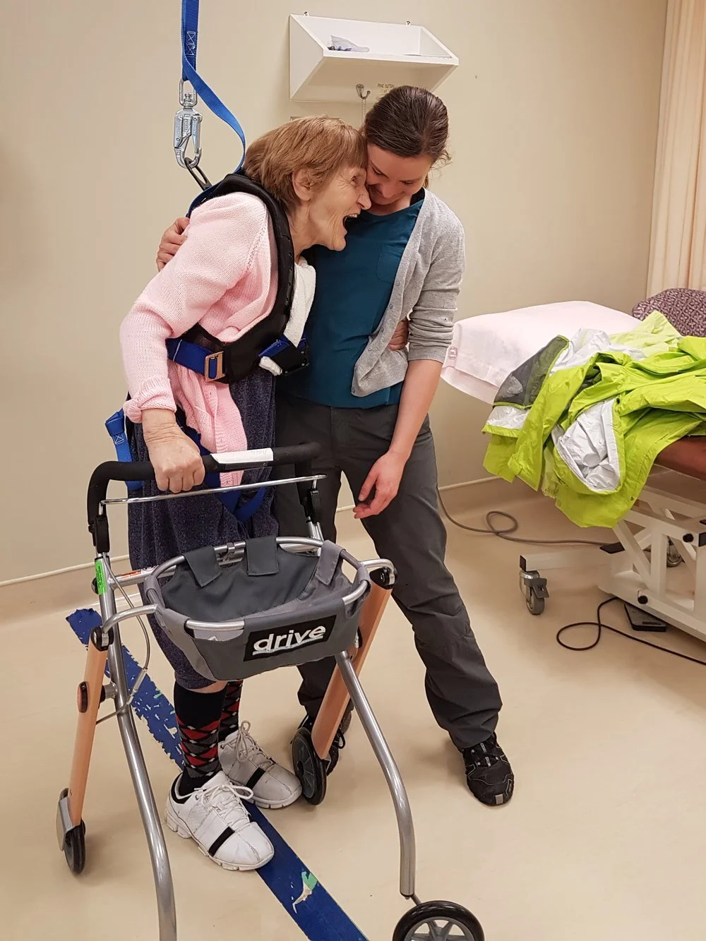 Annie and her colleagues have also raised money for indoor bikes, called cycle ergometers. They've also added an overhead track and harness system so long-term care residents can practise walking and climbing stairs without fear of falling. The more adventurous try dancing, floor hockey and imitation ice climbing.